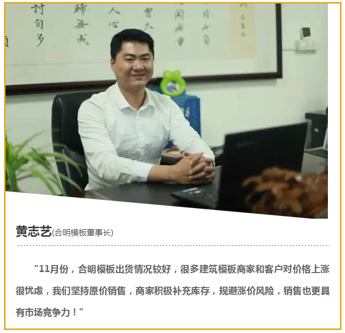 11月,在膠水原材料連續(xù)上漲、物流限載、匯率強(qiáng)震等多重不利因素下,建筑模板上漲趨勢(shì)明顯,多數(shù)建筑模板廠商紛紛調(diào)高單價(jià),上漲幅度2-5元/張。