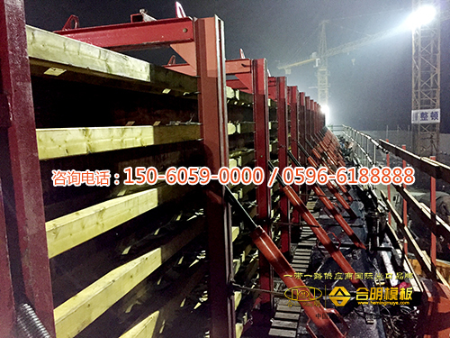此工程合作的是合明酚醛建筑模板,工程后期反應良好,無開膠、裂板等質量問題,使港珠澳大橋項目模板工程順利進行。合明酚醛建筑模板獨特的酚醛膠表面,使模板不易被水侵入,日曬雨淋一個月不變形,適合海底隧道工程、多雨地區施工。