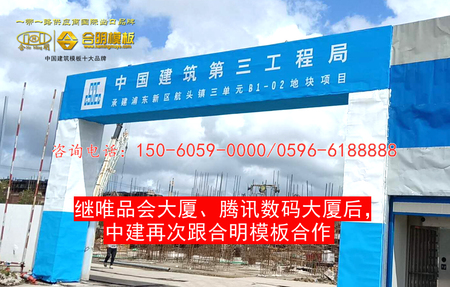 熱烈祝賀合明建筑模板再次同中建三局合作,建造上海市浦東新區(qū)航頭鎮(zhèn)三單元B1-02地塊項目!受到該項目施工人員好評。